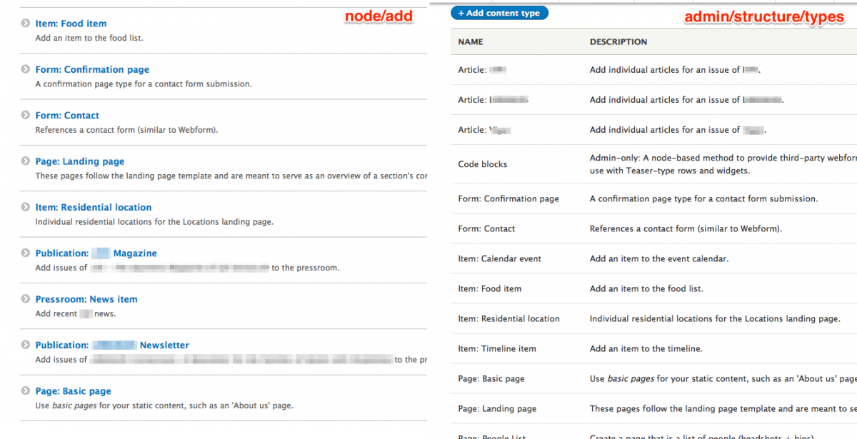 In Drupal 7, both of these lists are ordered by the human-readable label, not the machine name. This is the functionalty that I want to add back to my Drupal 8 site.